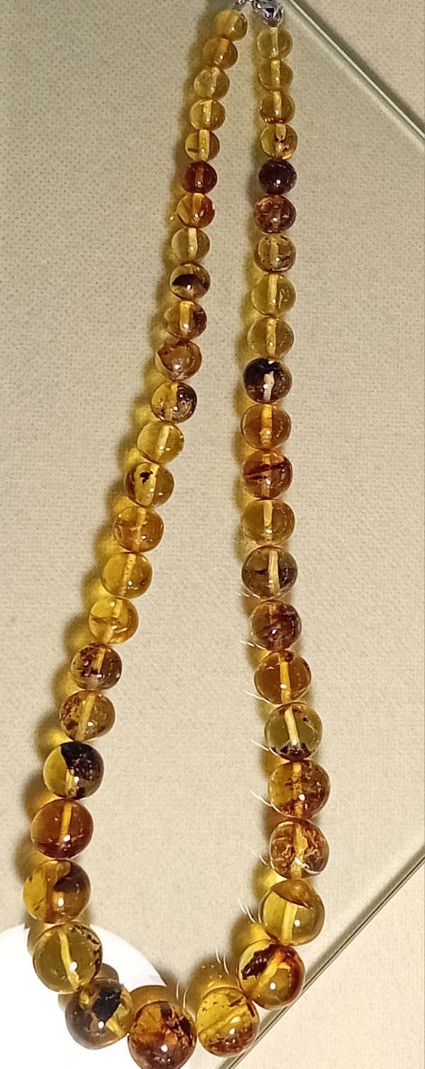 Bellissima collana d’ambra gialla con sedimenti fossili sferica progressiva